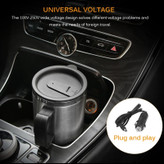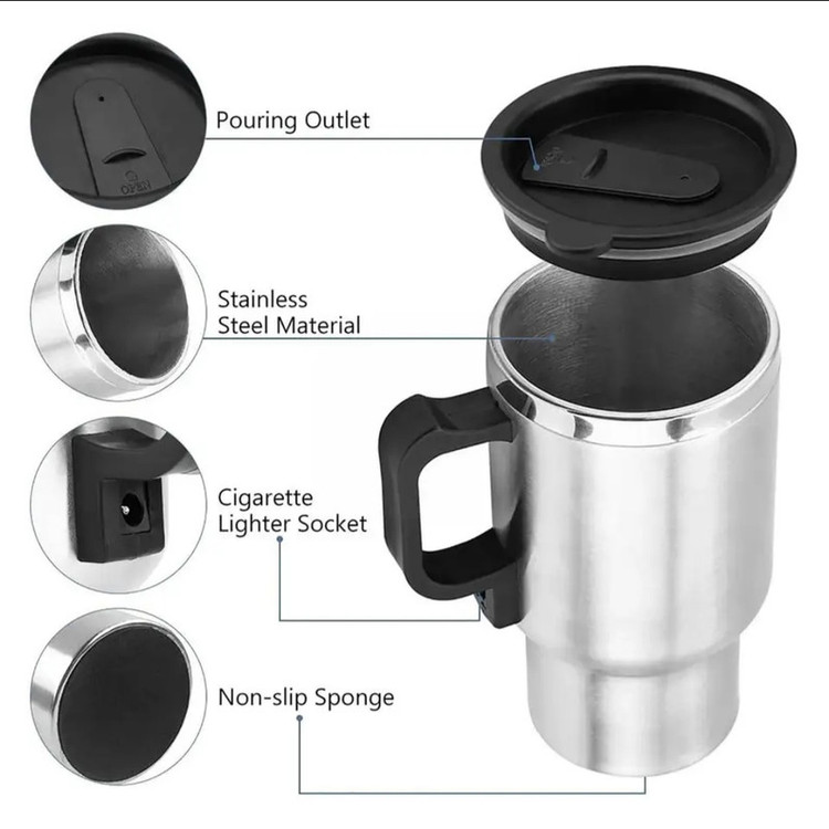ماگ برقی وسیلهای مناسب برای گرم کردن چای داخل ماشین است؛ چرا که میتوان این ماگ را به کمک کابل 1متر و 30 سانتیمتری و سری فندکی که همراه محصول عرضه میشود، به درگاه فندکی خودرو متصل و مایعات داخل آن را گرم کرد. 5 دقیقه بعد از اتصال آن به فندکی خودرو، در مدت زمان 40 دقیقه تا 75 درجهی سانتیگراد گرم میشود. دیگر ویژگی این ماگ، قابلیت حفظ دمای آن است. این محصول در شرایط بسته بودن در، قابلیت حفظ دمای داخلی را به مدت یک ساعت دارد و این قابلیت به علت وجود واشر ضد نشتی است که دور در آن طراحی شده و از هدر رفتن دمای آن جلوگیری میکند. این ویژگی کمک میکند تا این ماگ علاوه بر گرم کردن و گرم نگهداشتن مایعات، برای خنک نگهداشتن در مدت زمان کوتاه هم قابلاستفاده باشد. ظرفیت داخلی این ماگ 0.450 لیتر است و بدنهای فلزی از جنس فولاد ضد زنگ (استیل) دارد. در ساختار این ماگ از دیوارهی دولایه برای افزایش حفظ دما استفاده شده و دستهی پلاستیکی این لیوان کار حمل و استفاده کردن از آن داخل دست را آسان کرده است.